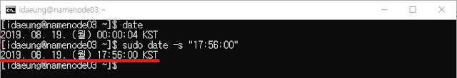 아래와 같이 명령어 오류가 난다면 root 권한으로 date 명령어를 실행합니다.